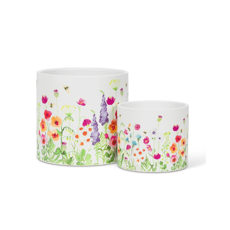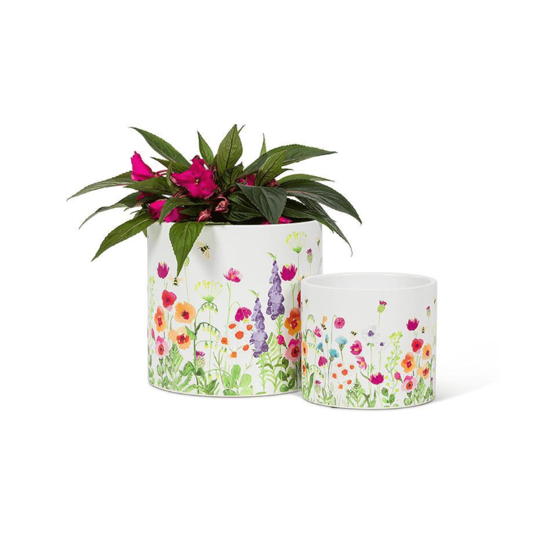 Sweeten your favourite plant or flowers' home with this bright Small Bee Garden Planter. Crafted out of ceramic, this white circular planter features a beautifully painted variety of colourful blooms circled by bustling bumble bees. Larger size also available.
