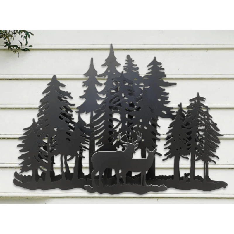 Looking for some rustic charm to your walls with our Deer in Pine Tree Forest metal wall art! This quirky and unique piece features a playful deer design nestled among the trees. Perfect for adding a touch of nature to any room.