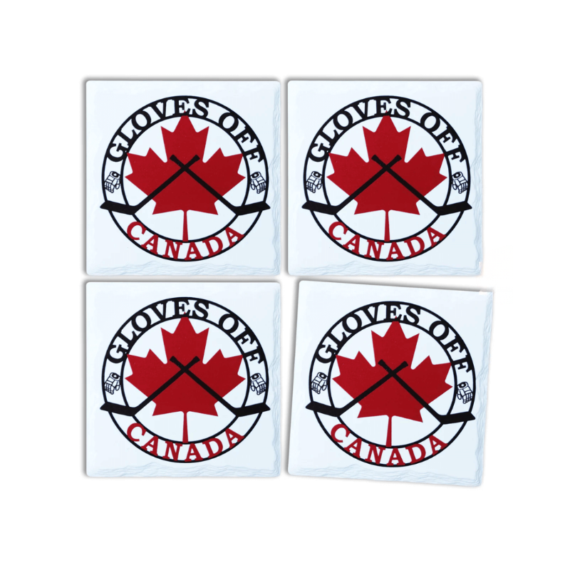 Bring some Canadian attitude to your coffee table with this set of four rustic coasters celebrating the "Gloves Off" spirit. Each coaster features the unmistakable Canadian edge—perfect for protecting surfaces while showing off your love of true north grit. Whether you're hosting game night or just enjoying a quiet moment at home, these coasters deliver personality with every drink.